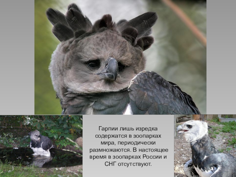 Слайд 14Гарпии лишь изредка содержатся в зоопарках мира, периодически размножаются. В