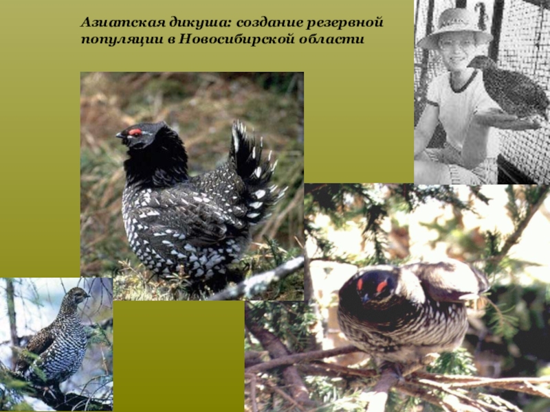 Слайд 19Азиатская дикуша: создание резервной популяции в Новосибирской области