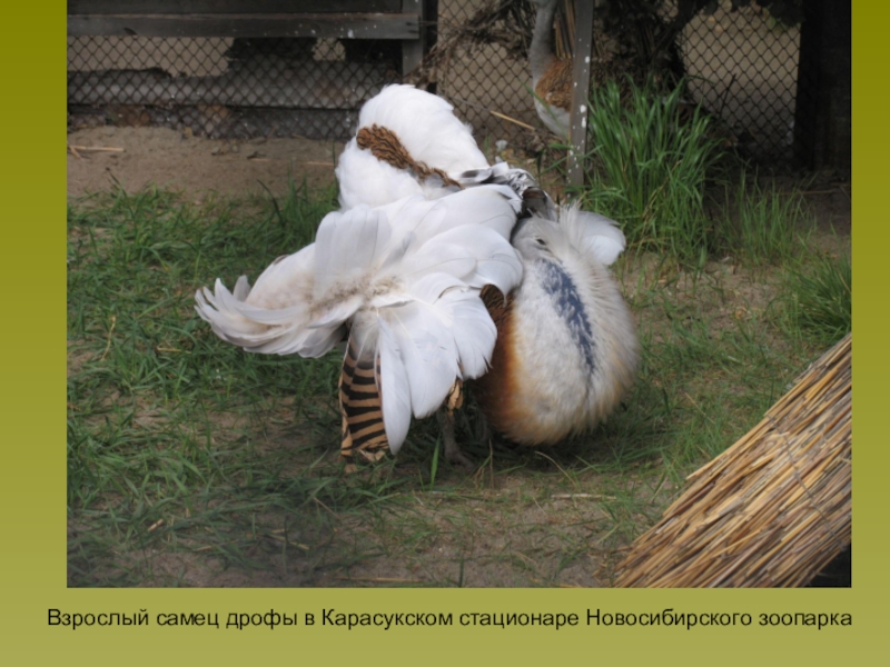 Слайд 20Взрослый самец дрофы в Карасукском стационаре Новосибирского зоопарка