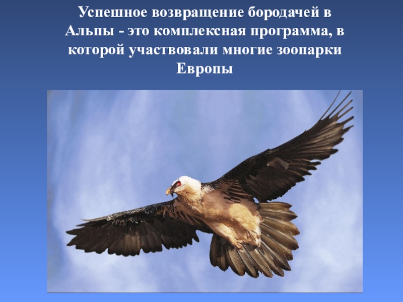 Слайд 7Успешное возвращение бородачей в Альпы - это комплексная программа, в