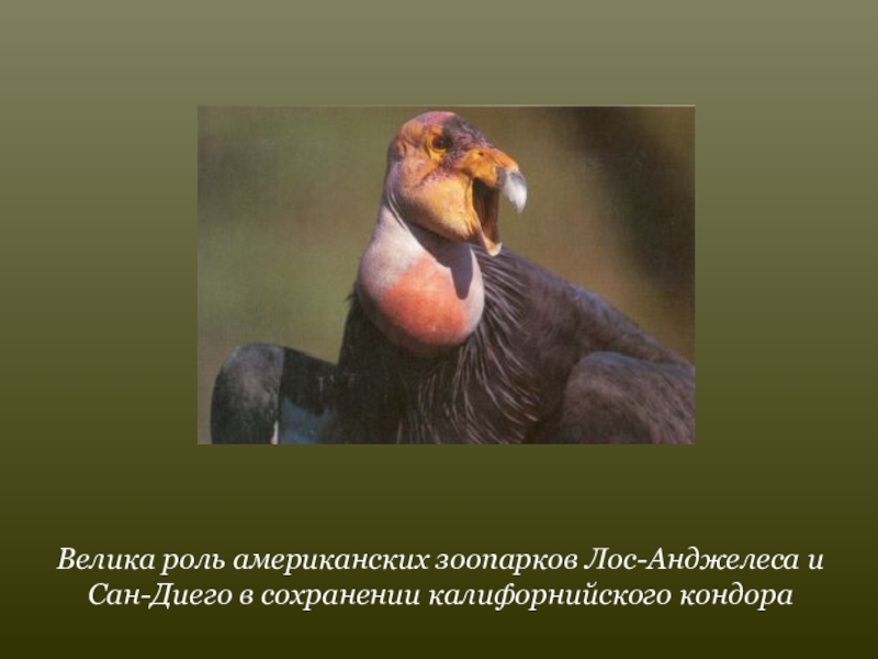 Слайд 3Велика роль американских зоопарков Лос-Анджелеса и Сан-Диего в сохранении калифорнийского