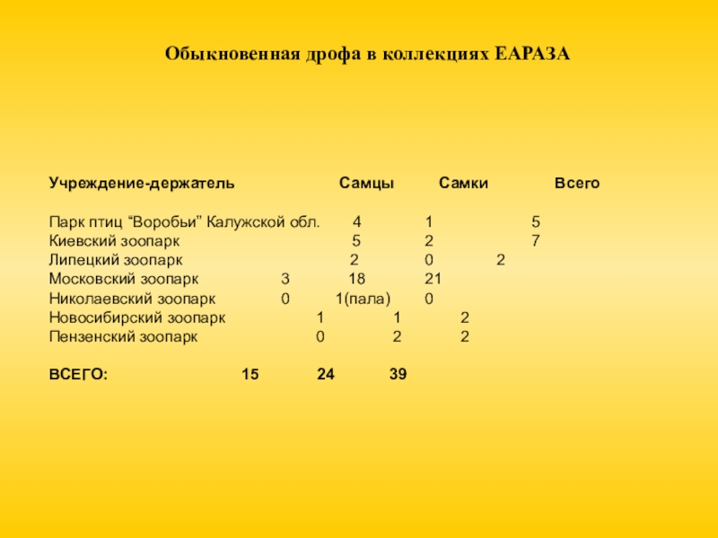 Обыкновенная дрофа в коллекциях ЕАРАЗА