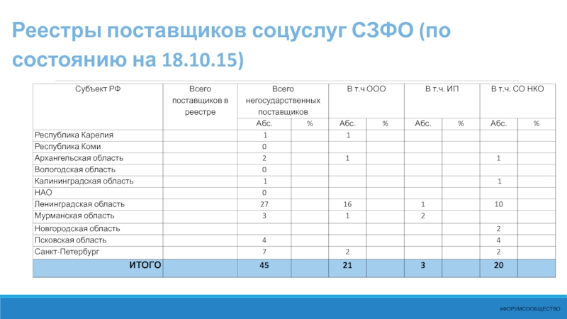 Реестры поставщиков соцуслуг СЗФО (по состоянию на 18.10.15)#ФОРУМСООБЩЕСТВО