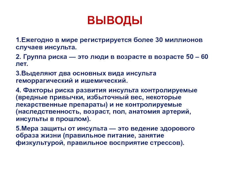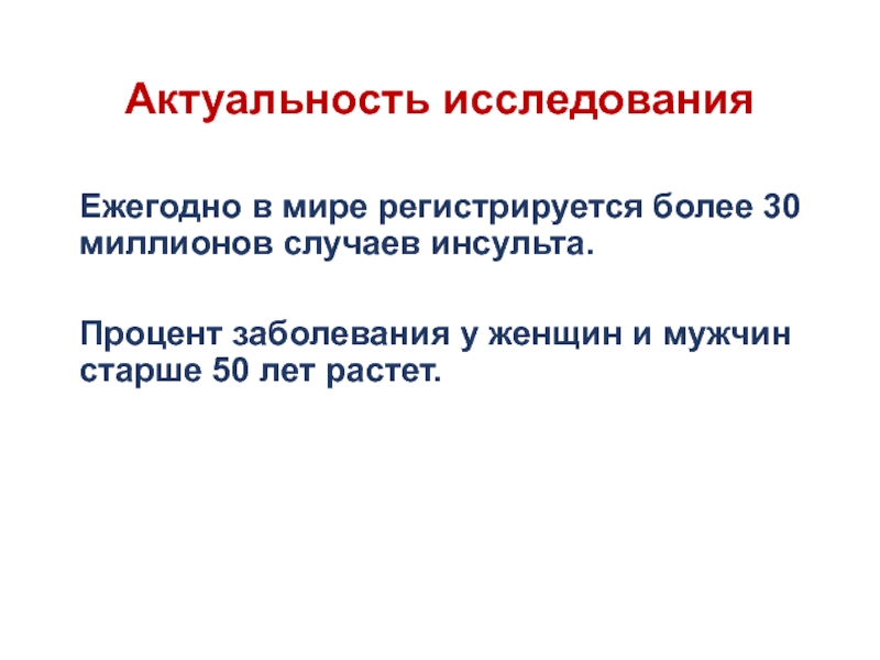 1.Ежегодно в мире регистрируется более 30 миллионов случаев инсульта.