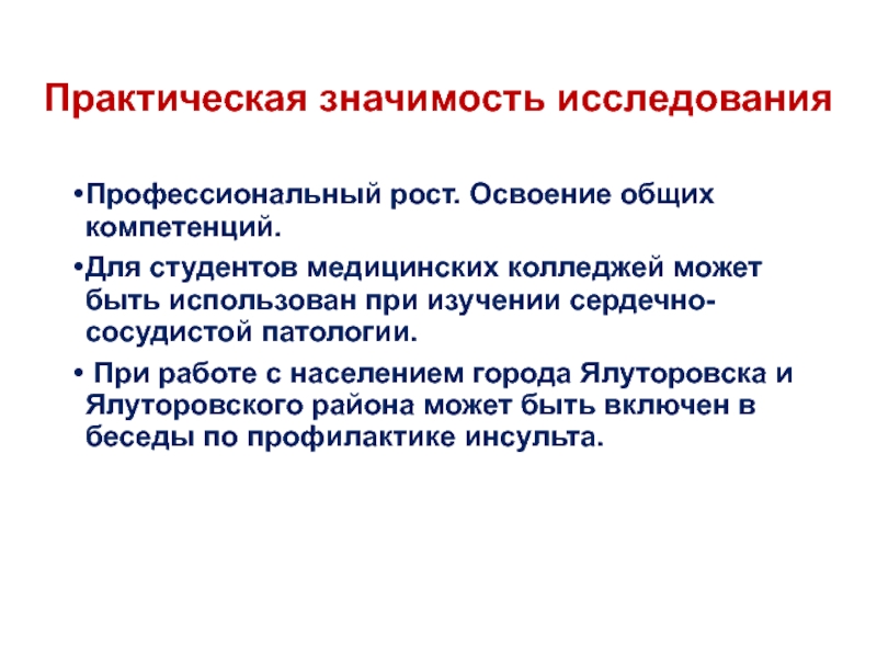 населением города Ялуторовска и Ялуторовского района может быть включен в беседы по профилактике инсульта.