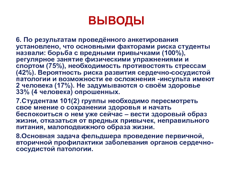 6. По результатам проведённого анкетирования установлено, что основными факторами риска