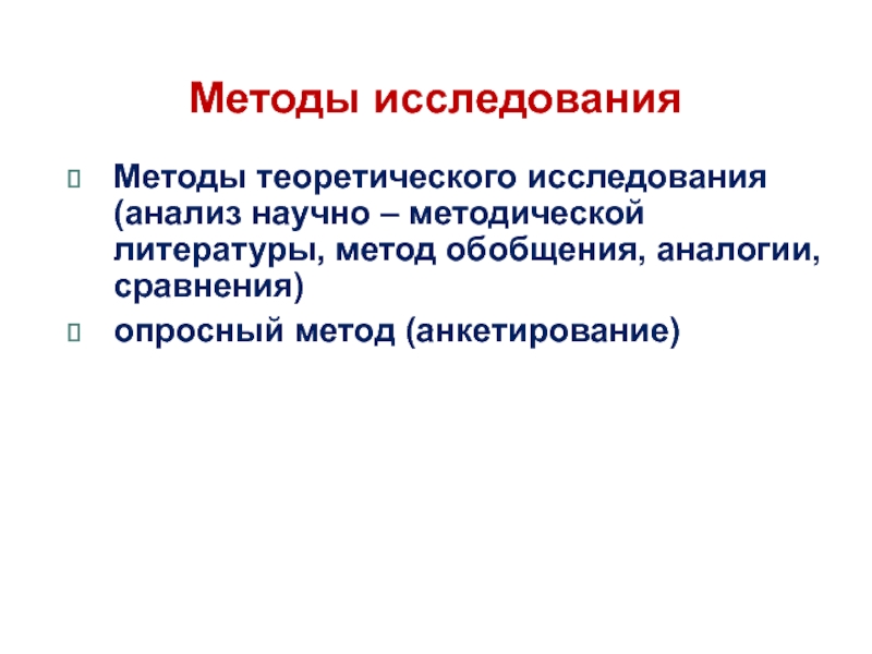 Методы теоретического исследования (анализ научно – методической литературы, метод