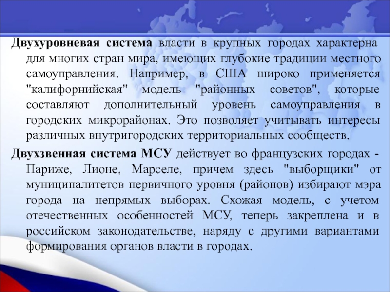 Слайд 6Двухуровневая система власти в крупных городах характерна для многих стран