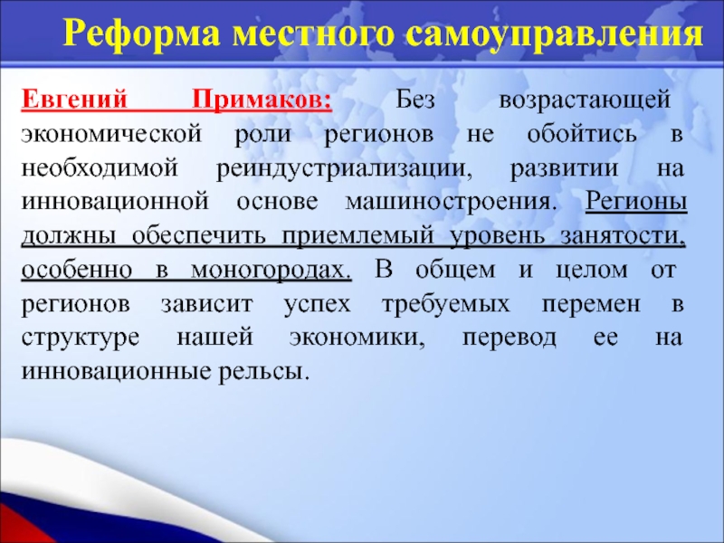 Слайд 4Евгений Примаков: Без возрастающей экономической роли регионов не обойтись в