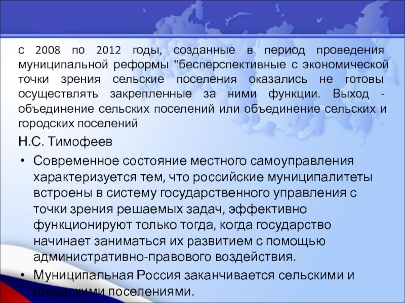 реформы "бесперспективные с экономической точки зрения сельские поселения оказались не
