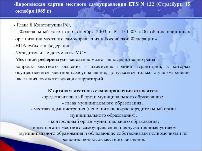 Слайд 2Европейская хартия местного самоуправления ETS N 122 (Страсбург, 15 октября