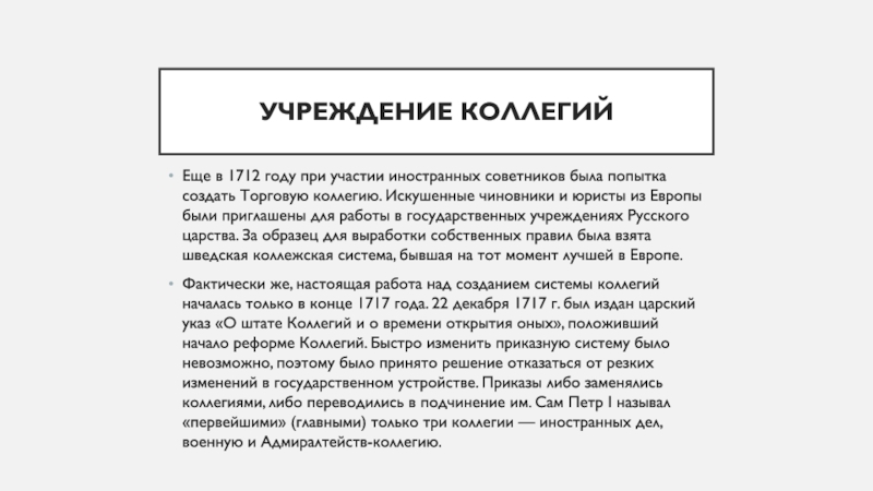 Слайд 4Учреждение коллегий