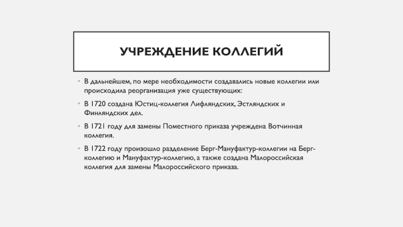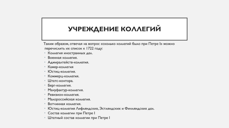 Слайд 7Учреждение коллегий