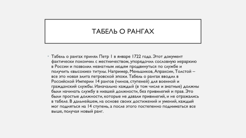 Слайд 14Табель о рангах