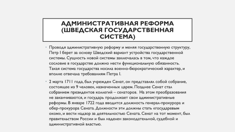 структуру, Петр I берет за основу Шведский вариант устройства государственной