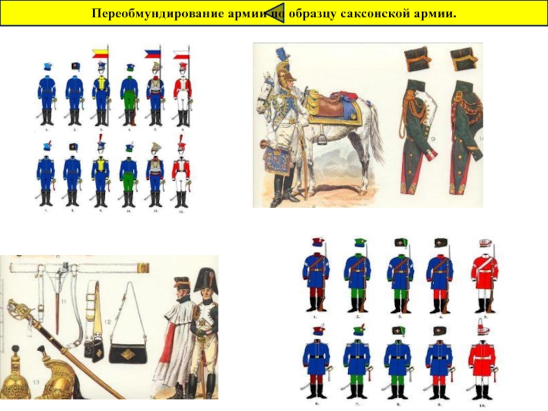 Государство наладило переобмундирование армии по образцу саксонской армии.