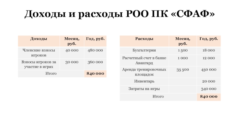 Слайд 11Доходы и расходы РОО ПК «СФАФ»