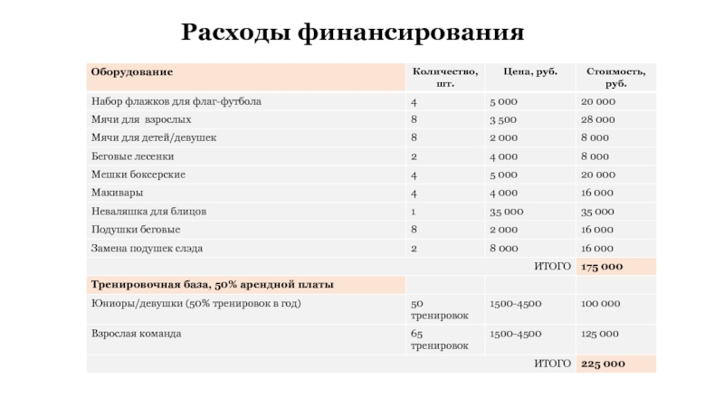 - Высокая стоимость арендной оплаты тренировочной и игровой баз;
