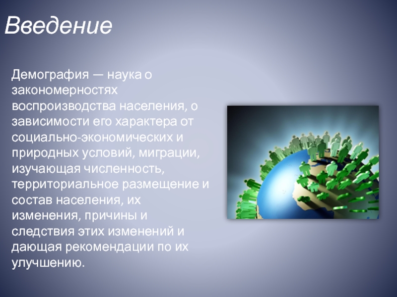 Демография — наука о закономерностях воспроизводства населения, о зависимости его
