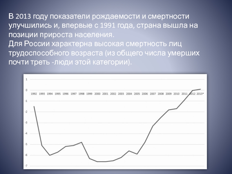 В 2013 году показатели рождаемости и смертности улучшились и, впервые с 1991 года, страна вышла на позиции