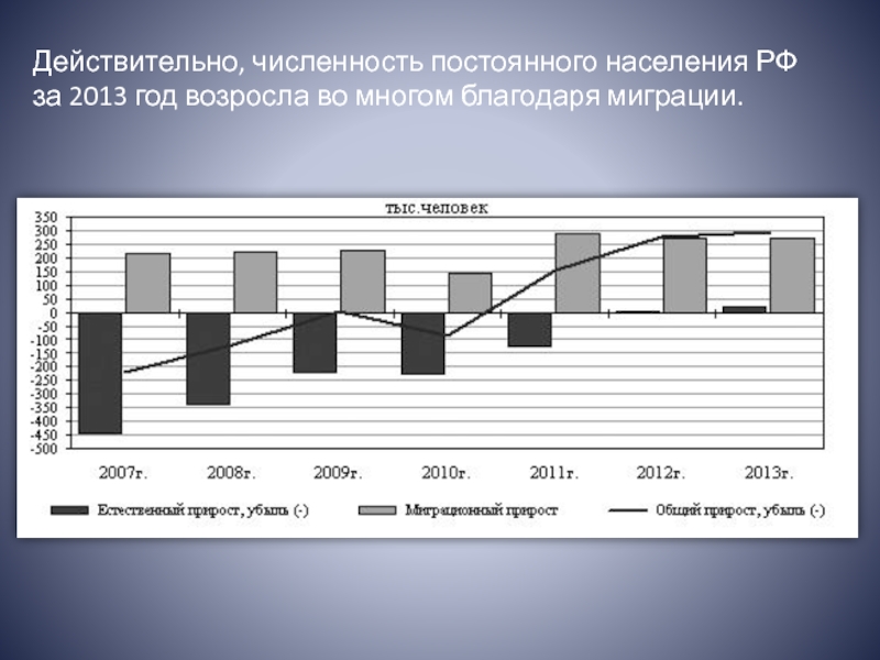 Слайд 6Действительно, численность постоянного населения РФ за 2013 год возросла во
