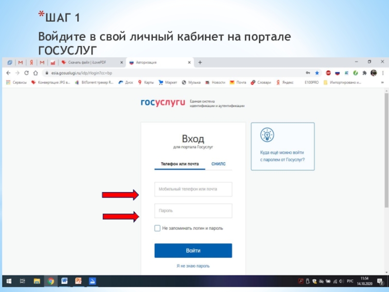 ШАГ 1Войдите в свой личный кабинет на портале ГОСУСЛУГ