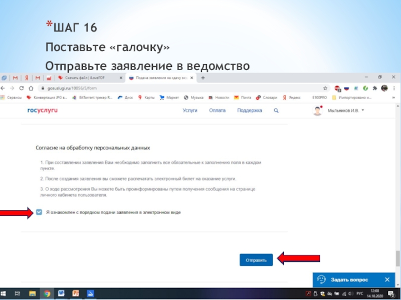 ШАГ 16Поставьте «галочку» Отправьте заявление в ведомство