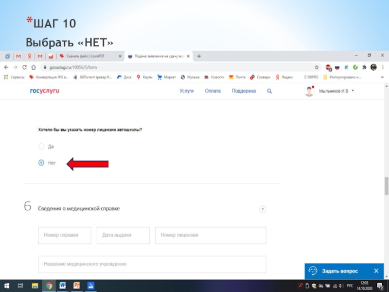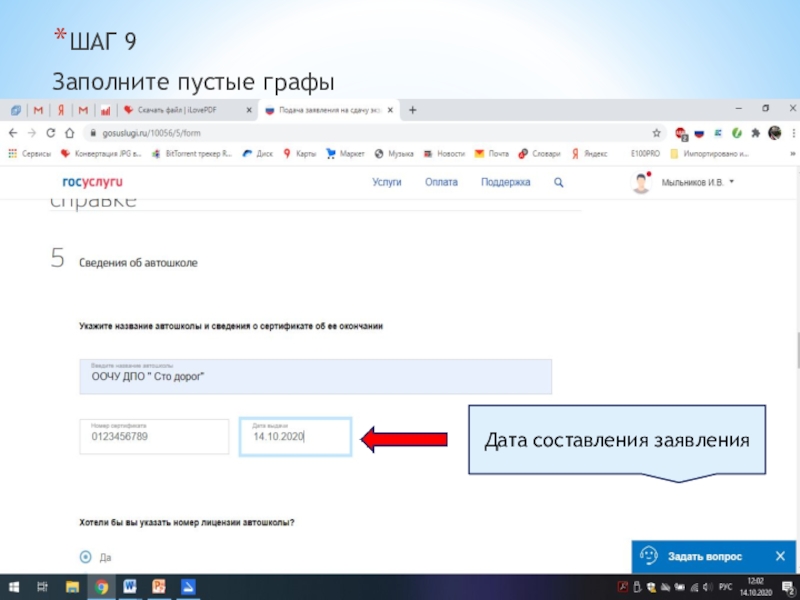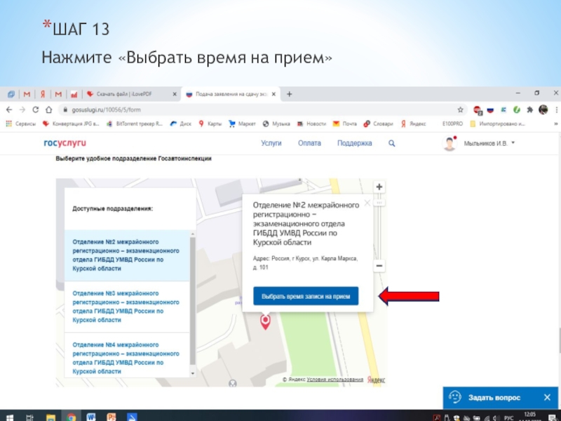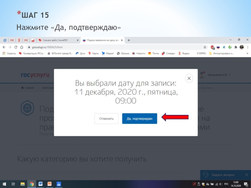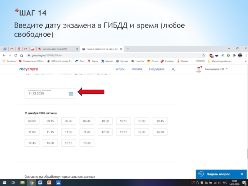 ШАГ 14Введите дату экзамена в ГИБДД и время (любое свободное)