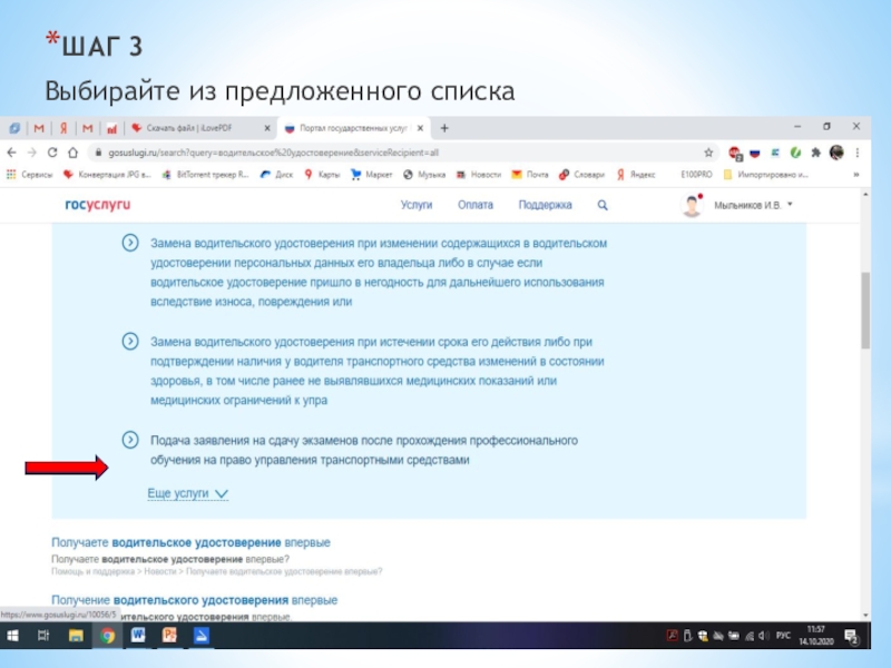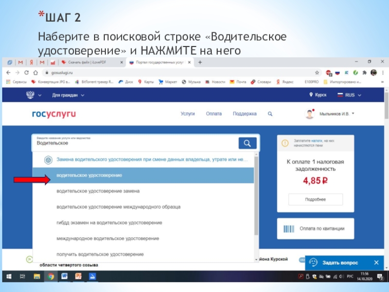 ШАГ 2Наберите в поисковой строке «Водительское удостоверение» и НАЖМИТЕ на него