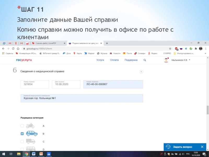 ШАГ 11Заполните данные Вашей справкиКопию справки можно получить в офисе по работе с клиентами