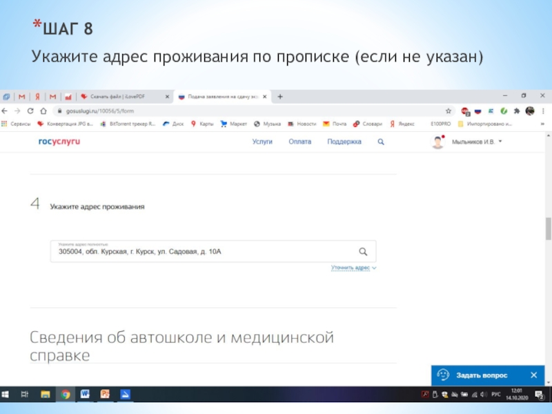 ШАГ 8Укажите адрес проживания по прописке (если не указан)