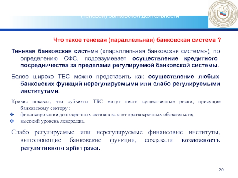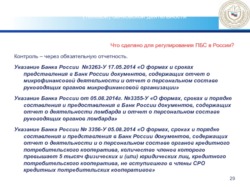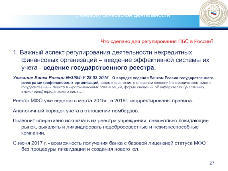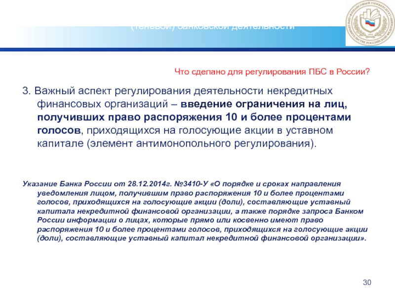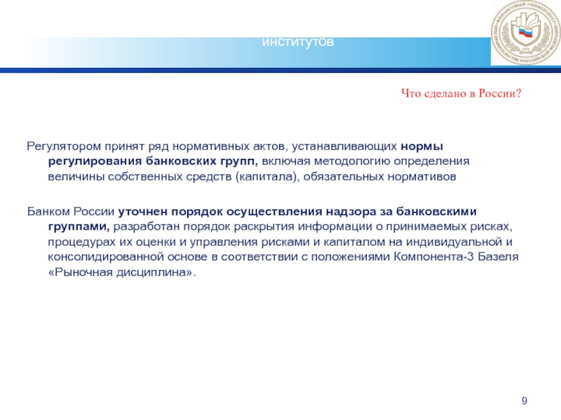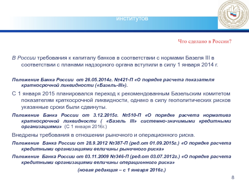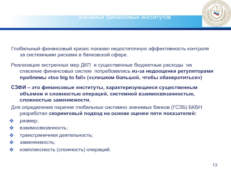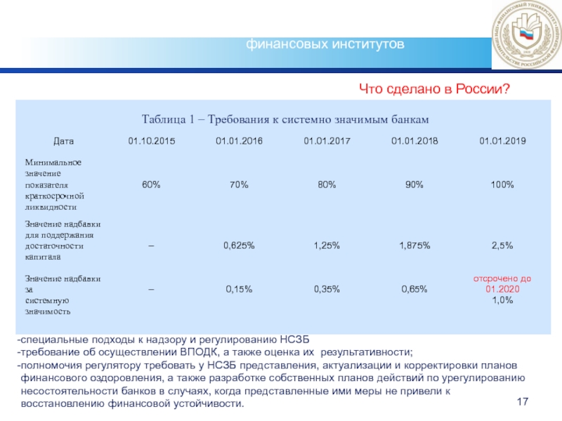 2. Регулирование деятельности системно-значимых финансовых институтов