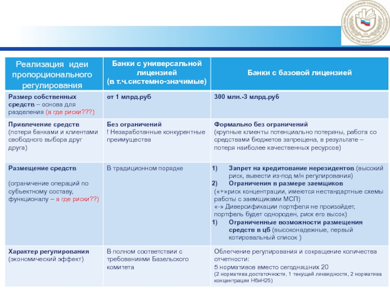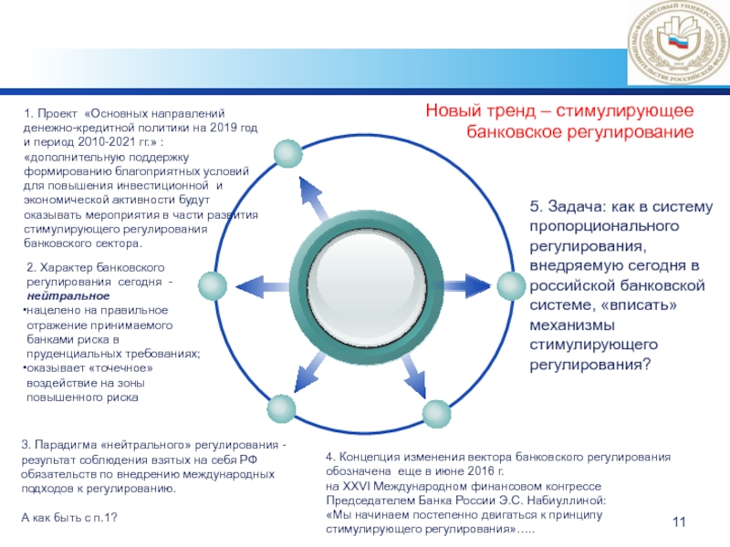5. Задача: как в систему пропорционального регулирования, внедряемую сегодня в российской банковской системе, «вписать» механизмы стимулирующего регулирования?