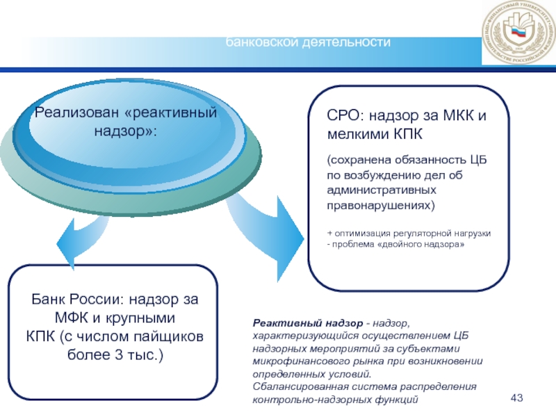 Реактивный надзор - надзор, характеризующийся осуществлением ЦБ надзорных мероприятий за субъектами микрофинансового рынка при возникновении определенных условий.