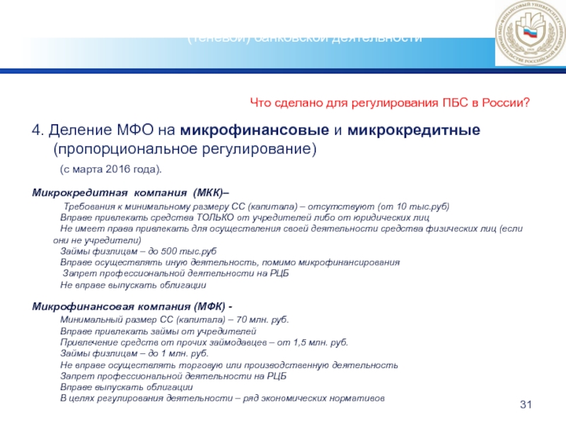 4. Деление МФО на микрофинансовые и микрокредитные (пропорциональное регулирование)