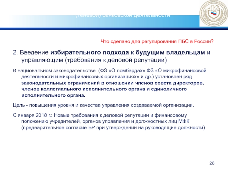 2. Избирательный подход к будущим владельцам и управляющим (требования к деловой репутации)
