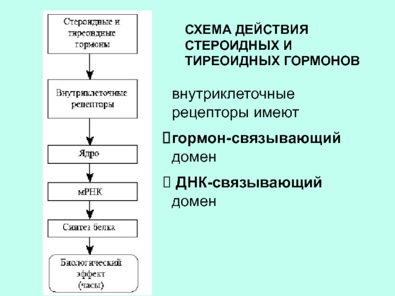 Слайд 29СХЕМА ДЕЙСТВИЯ СТЕРОИДНЫХ И ТИРЕОИДНЫХ ГОРМОНОВ
