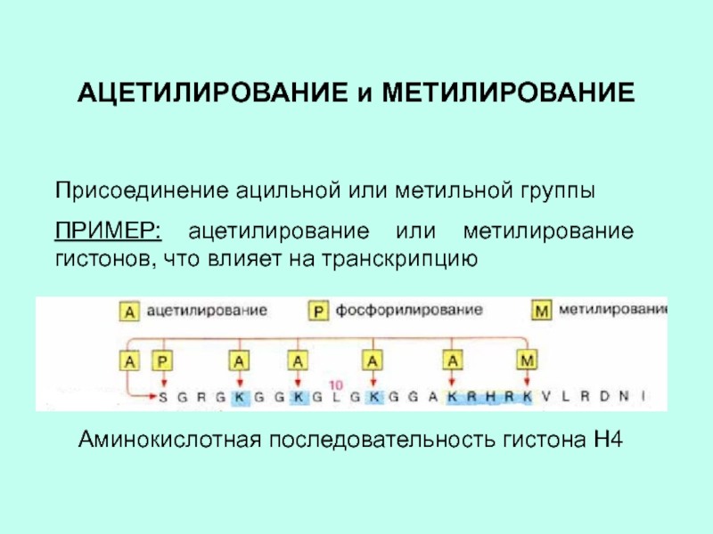 Слайд 9АЦЕТИЛИРОВАНИЕ и МЕТИЛИРОВАНИЕ