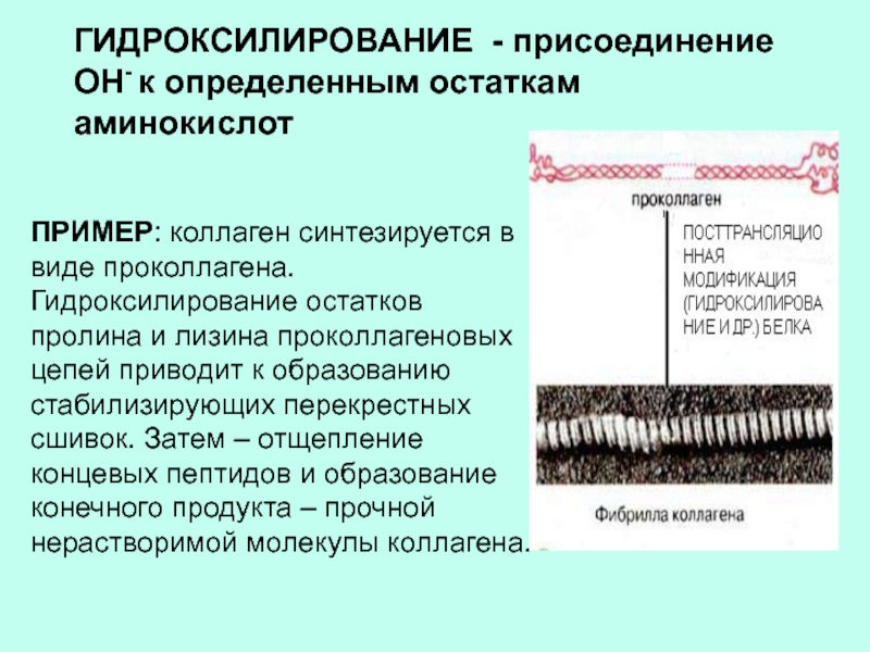 Слайд 7ГИДРОКСИЛИРОВАНИЕ - присоединение ОН- к определенным остаткам аминокислот