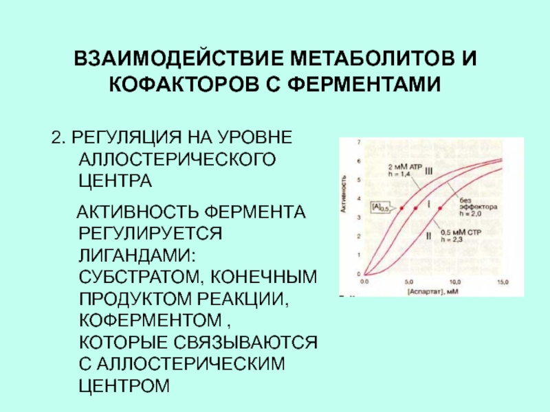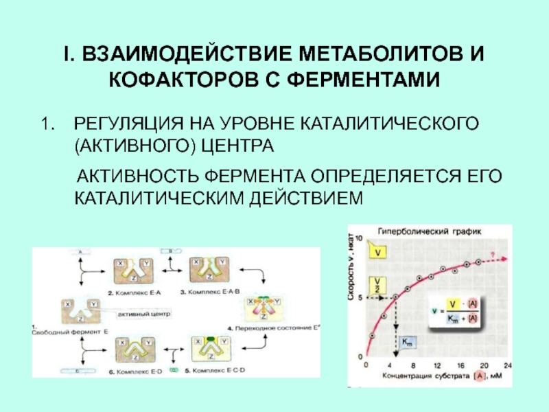 Слайд 3I. ВЗАИМОДЕЙСТВИЕ МЕТАБОЛИТОВ И КОФАКТОРОВ С ФЕРМЕНТАМИ