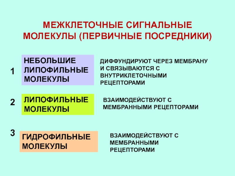 Слайд 27МЕЖКЛЕТОЧНЫЕ СИГНАЛЬНЫЕ МОЛЕКУЛЫ (ПЕРВИЧНЫЕ ПОСРЕДНИКИ)