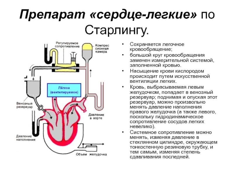 Слайд 17Препарат «сердце-легкие» по Старлингу.