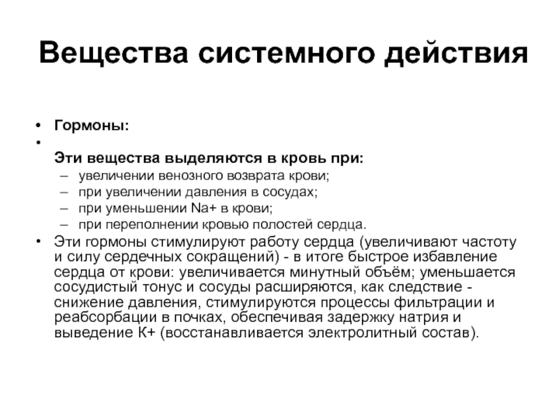центральные, определяющие уровень артериального давления (АД) и системное кровообращение