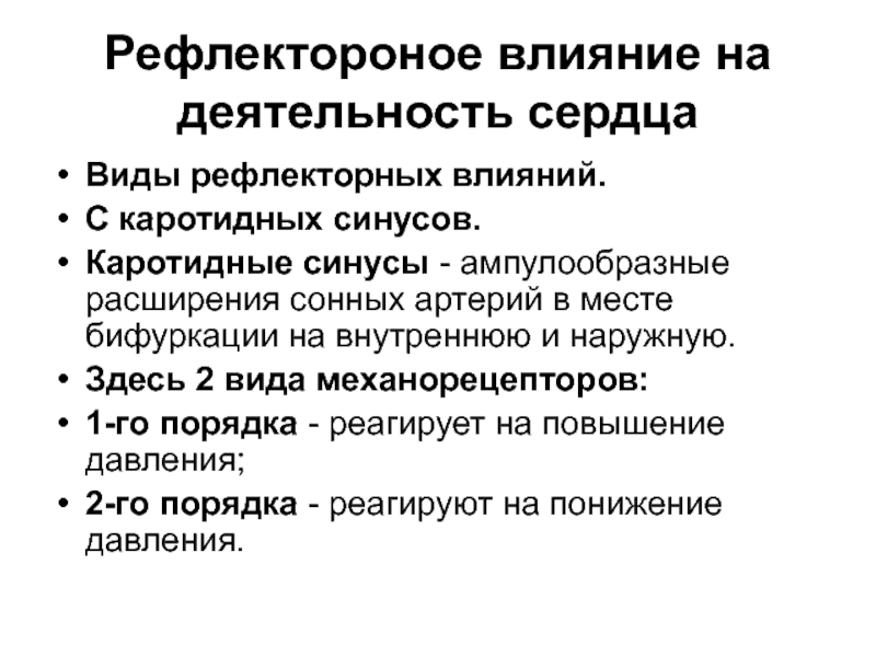 Слайд 80Рефлектороное влияние на деятельность сердца