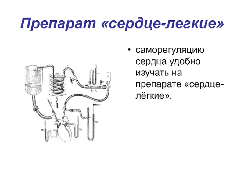 саморегуляцию сердца удобно изучать на препарате «сердце-лёгкие».