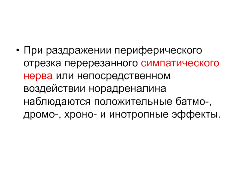 норадреналина наблюдаются положительные батмо-, дромо-, хроно- и инотропные эффекты.