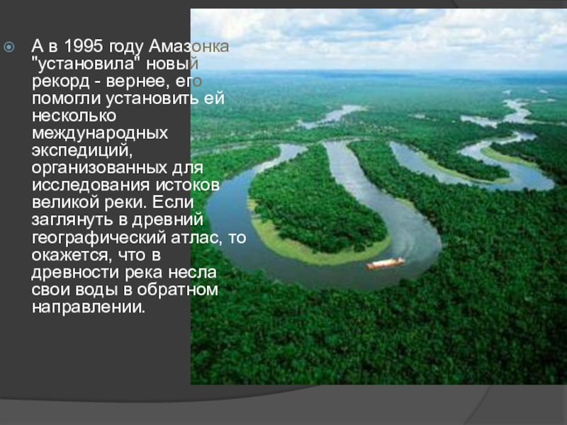 Слайд 5А в 1995 году Амазонка "установила" новый рекорд - вернее,