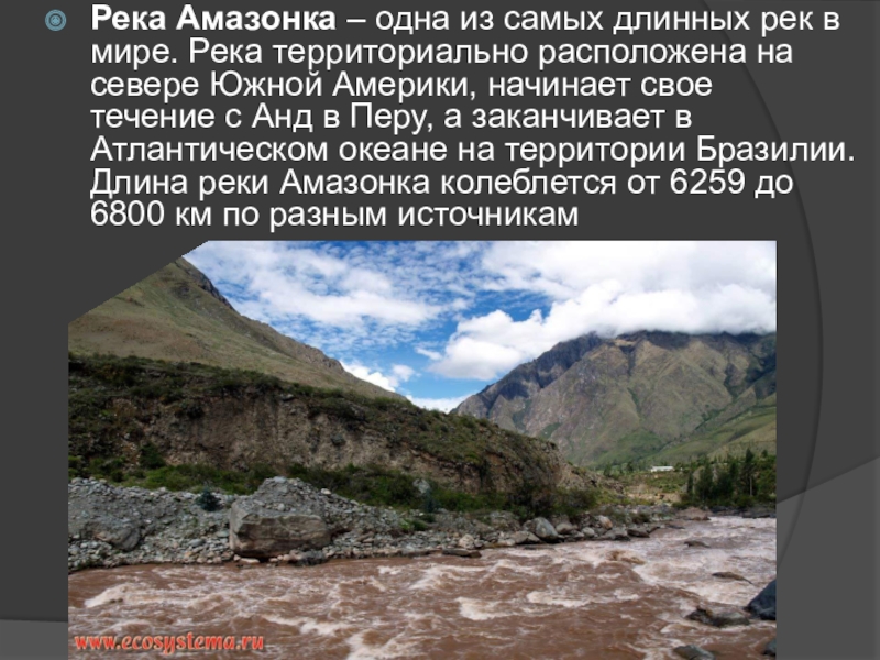 Слайд 2Река Амазонка – одна из самых длинных рек в мире.
