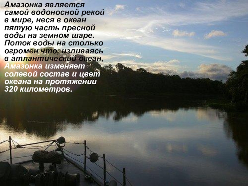 Слайд 4Амазонка является самой водоносной рекой в мире, неся в океан