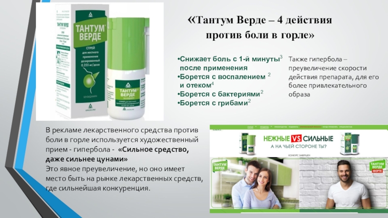 Также гипербола – преувеличение скорости действия препарата, для его более привлекательного образа